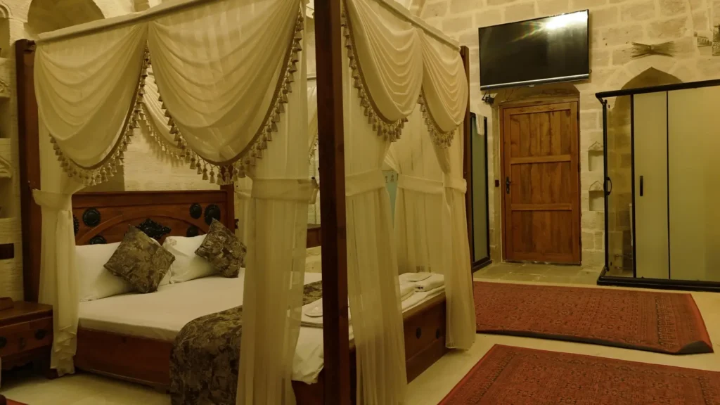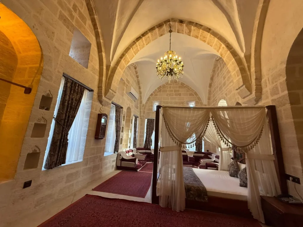 2 kişilik konaklama kapasitesine sahip, double yataklı ve 2. katta konumlanan odamız; Mezopotamya manzarasıyla eşsiz bir konaklama deneyimi sunmaktadır. Şark köşesi ve altı pencereli özel mimarisi sayesinde ferah, aydınlık ve otantik bir atmosfer sağlayan odamız, konfor ve estetiği bir arada sunmaktadır.